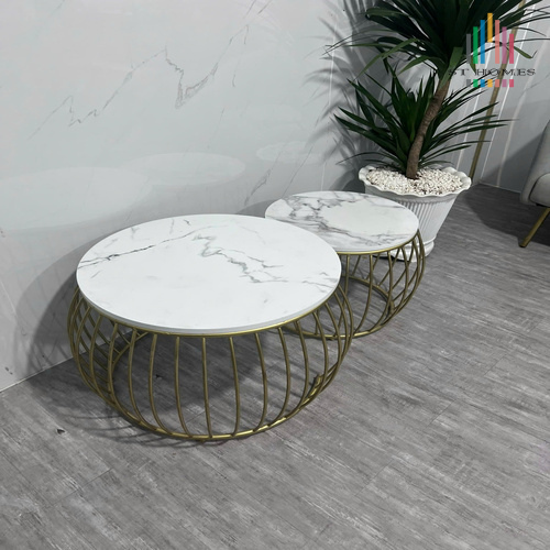 Bàn Sofa hiện đại với mặt đá và khung sắt mạ đồng, tạo điểm nhấn cho không gian