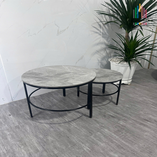 Bàn Sofa hiện đại với mặt đá và khung sắt mạ đồng, tạo điểm nhấn cho không gian