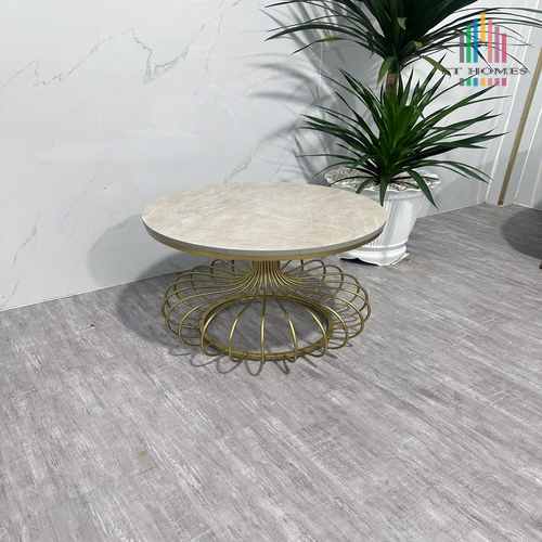Bàn Sofa hiện đại với mặt đá và khung sắt mạ đồng, tạo điểm nhấn cho không gian