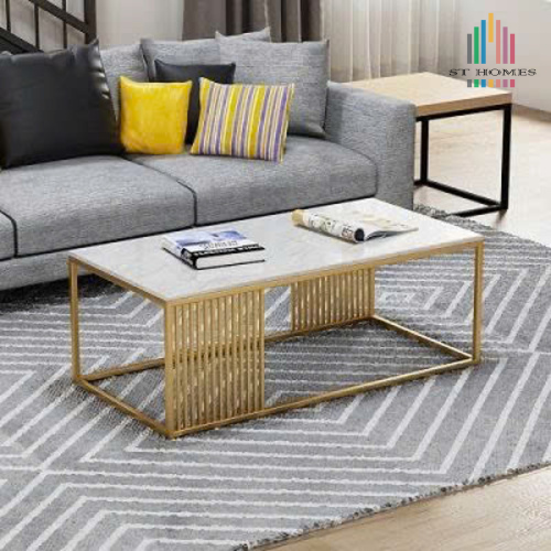 Bàn Sofa hiện đại với mặt đá và khung sắt mạ đồng, tạo điểm nhấn cho không gian